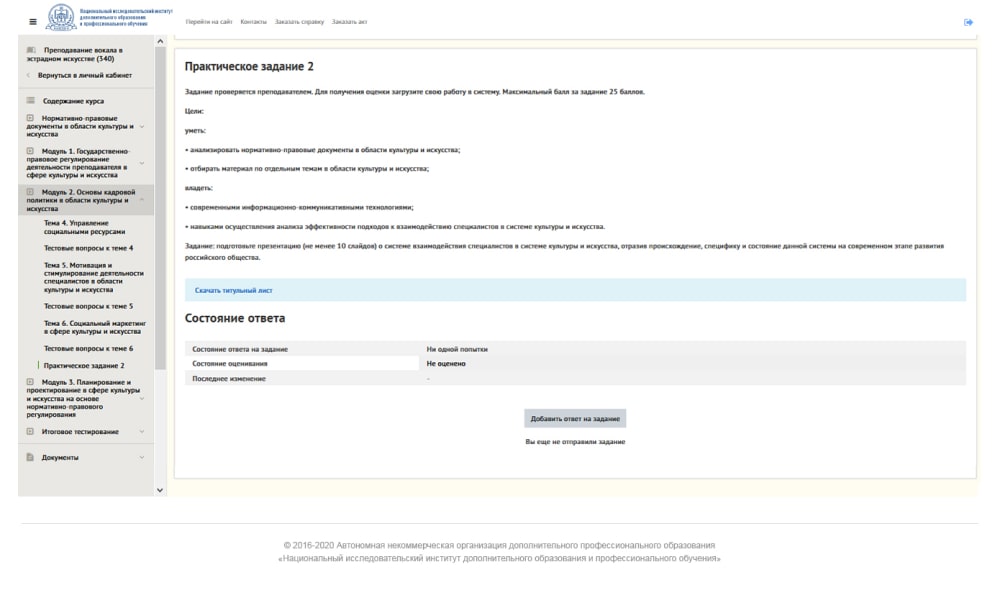 На некоторых программах обучающиеся выполняют практические задания, основанные на реальных ситуациях. Эксперты-практики проверяют ответы и дают обратную связь.