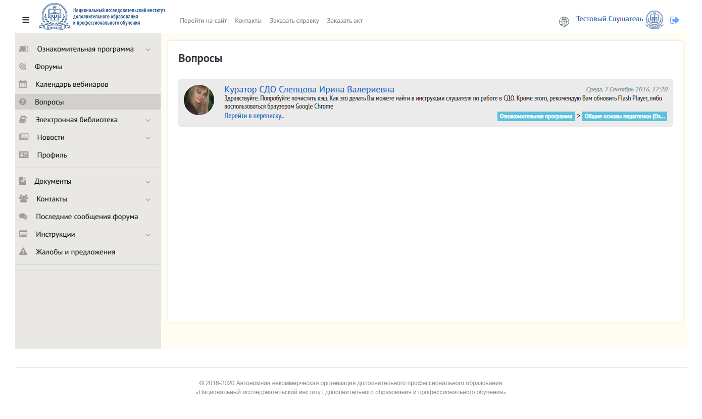 В системе дистанционного обучения созданы все условия для общения. Экспертам-практикам и куратору (администратору) СДО вы можете задать вопрос через личные сообщения.