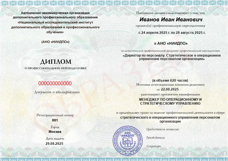 - Диплом АНО «НИИДПО» предоставляет право на работу в сфере управления персоналом, признается работодателями и аттестационной комиссией