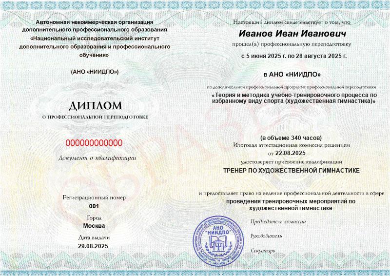 Обзор программы профессиональной переподготовки «Теория и методика учебно-тренировочного процесса по избранному виду спорта (художественная гимнастика)» с присвоением квалификации «Тренер по художественной гимнастике»