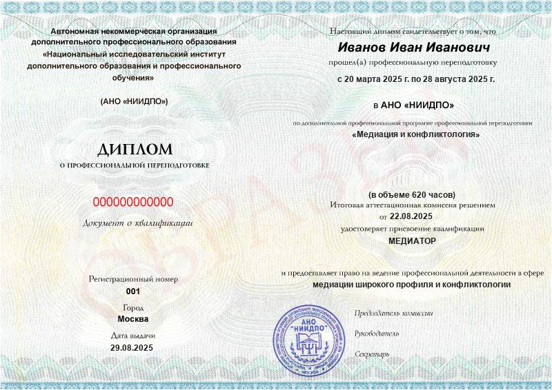 Студент, желающий поступить в АНО «НИИДПО», должен предоставить справку из образовательной организации. Независимо от срока окончания обучения по программе дополнительного образования, диплом о профпереподготовке выдаётся только после предъявления документа о получении среднего профессионального или высшего образования.