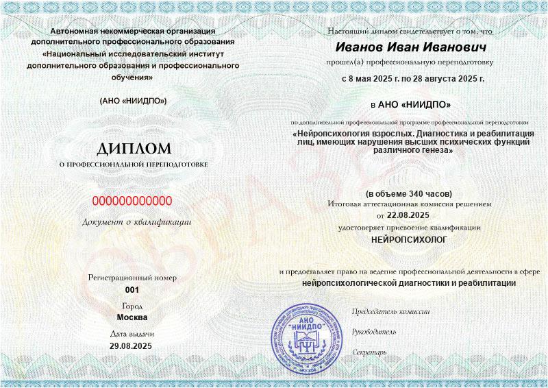 Обзор программы профессиональной переподготовки «Нейропсихология взрослых. Диагностика и реабилитация лиц, имеющих нарушения высших психических функций различного генеза» с присвоением квалификации «Нейропсихолог»