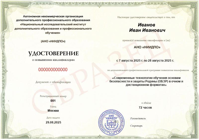 Обзор программы повышения квалификации «Современные технологии обучения основам безопасности и защиты Родины (ОБЗР) в очном и дистанционном форматах»
