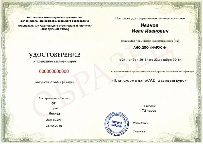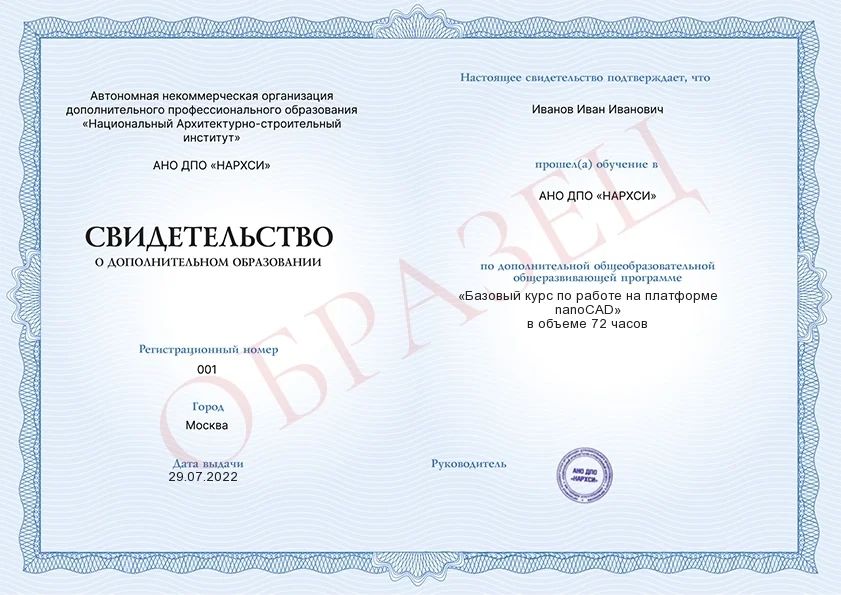 Учебный план программы повышения квалификации «Платформа nanoCAD. Базовый курс»