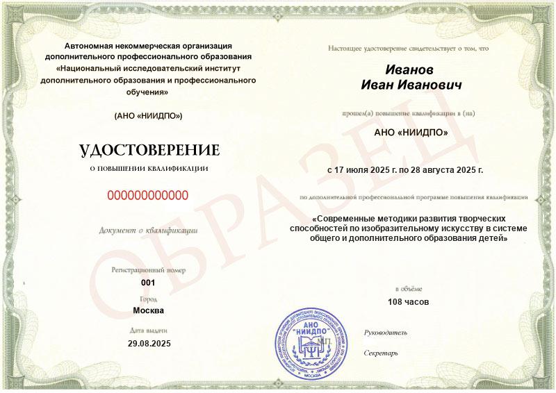 Развитие творческого потенциала через рисование — очень полезное и интересное занятие для детей. Оно помогает раскрыть их интеллектуальные способности, познать новое через формы и цвета. Если вы тоже любите рисовать и хотите раскрывать талант своих учеников, то приглашаем вас пройти курс повышения квалификации для улучшения ваших профессиональных качеств.
