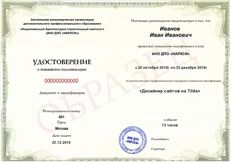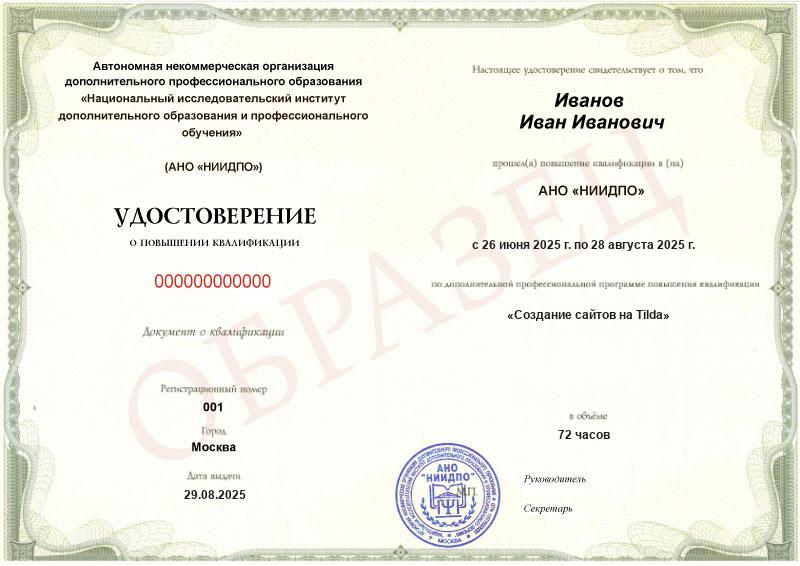 Да, документы оформляются на бланках с защитой от подделок, заполняются на русском языке, в них ставится печать АНО «НИИДПО».